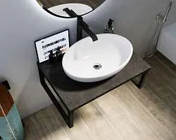 Столешница из ЛДСП, которая создана для тех, кто предпочитает эстетику и тепло дерева каменным и металлическим фактурам. Лаконичная, стильная, выполненная из проверенных и качественных материалов, она своим примером доказывает, что для эффектного и стильного дизайна не нужно ничего лишнего. Столешница дополнена матовыми металлическими кронштейнами, которые могут использоваться в качестве рейлингов и делать окружающее пространство еще более практичным и функциональным. Это прекрасное решение для современной ванной комнаты любых размеров и цветов.