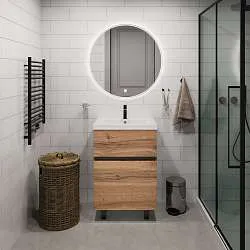 16 800 Р Тумба под раковину БЛОК/Aris 60Н (590х870х440) 2я антрацит/дуб крафт золотой