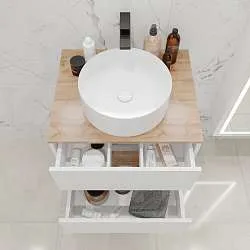 Функциональная и стильная столешница в востребованной и актуальной стилистике LOFT. Минималистичная и одновременно эффектная, она изготовлена в универсальной прямоугольной форме и дополнена такими практичными деталями, как металлические кронштейны, которые можно использовать в качестве рейлингов. Столешница выполнена из проверенных материалов, прекрасно защищена от воздействия влаги, не склонна к появлению сколов, царапин, трещин и других дефектов. Она подойдет для ванных комнат любых размеров и практически любой цветовой гаммы - от сдержанной до яркой и насыщенной.Характеристики:
