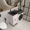 Тумба под раковину* Maid – элегантное решение "2-в-1", которое объединяет функциональность и стиль, позволяя гармонично разместить раковину и стиральную машину в ванной комнате. Белый цвет легко сочетается с другими цветами и стилями интерьера, предоставляя свободу в оформлении ванной комнаты. Акцентные опоры черного цвета гармонично дополнят ваш выбор: строгая графитовая или нежная белая раковина – для создания неповторимого стиля ванной комнаты.Характеристики: