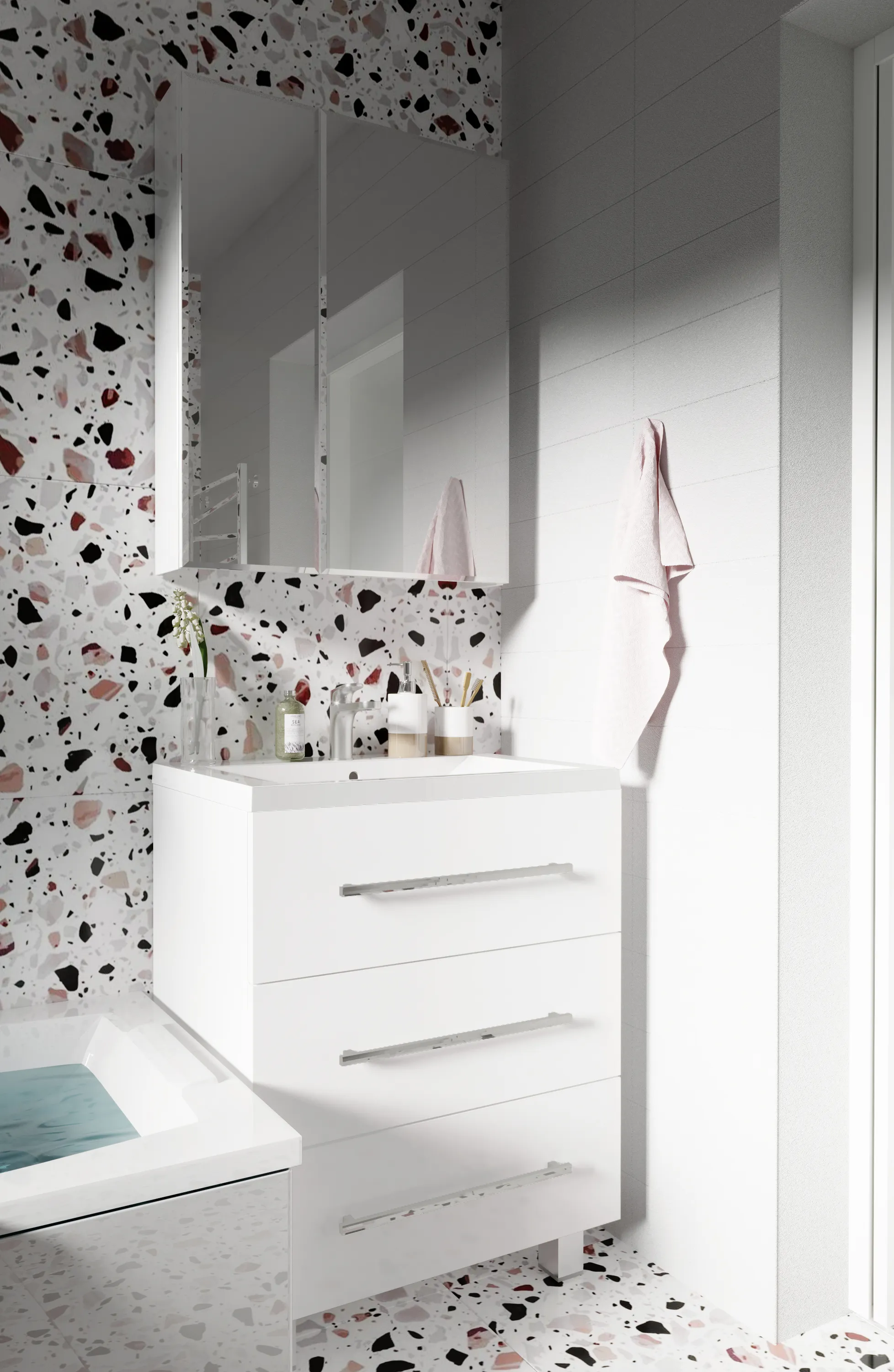 Тумба под раковину, которую по праву можно назвать современной классикой - лаконичный и одновременно стильный дизайн сочетаются в ней с повышенной функциональностью, которая крайне важна в современных пространствах. Три выдвижных ящика позволяют с комфортом организовать процесс хранения любых вещей и предметов - от бытовой химии и косметики до банных аксессуаров и личных вещей. Ручки ящиков могут использоваться как держатели для полотенец и халатов. А проверенные временем, качественные материалы исполнения делают представленную модель по-настоящему практичной и долговечной.