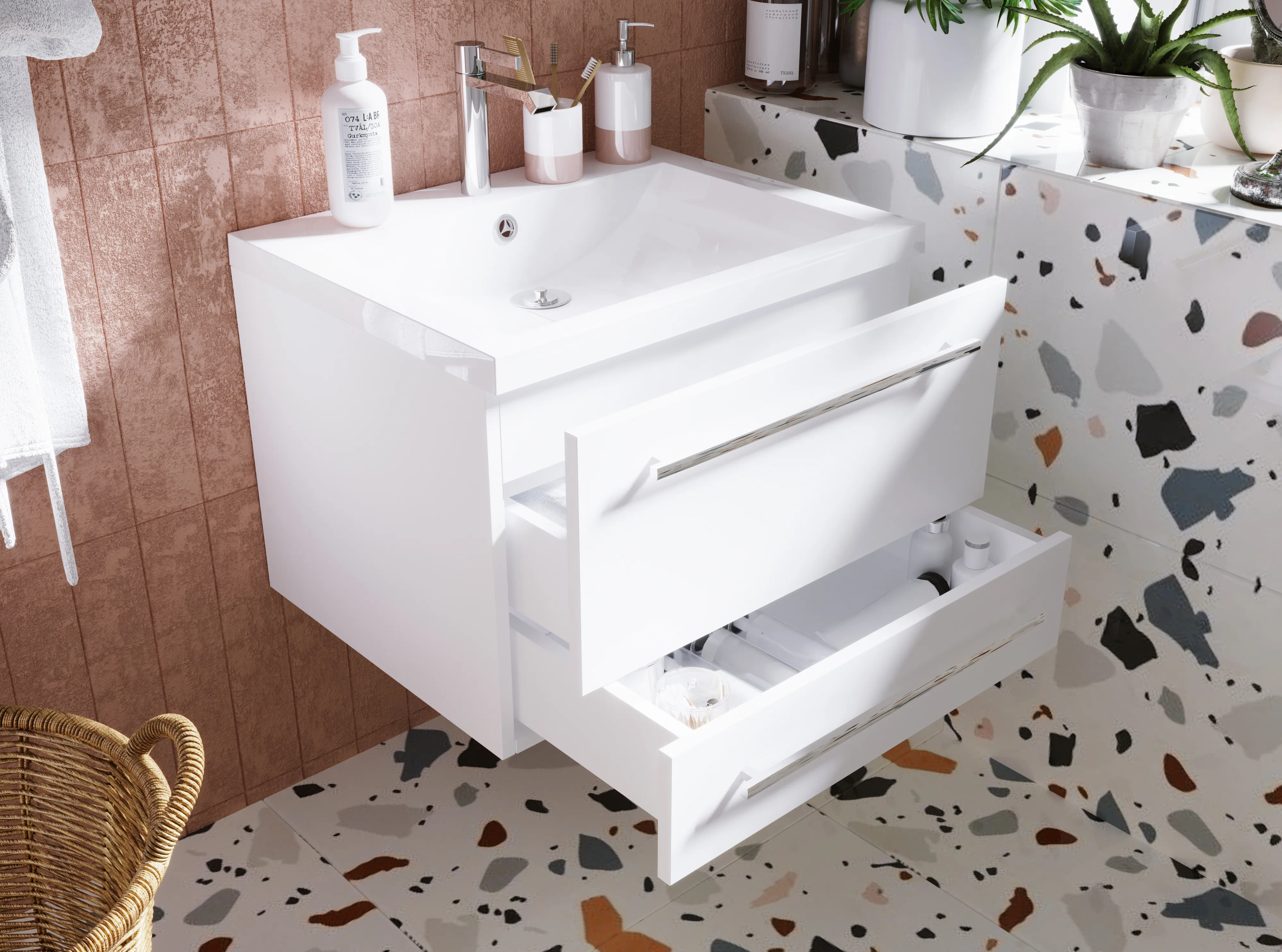 Тумба под раковину Соната, которую по праву можно назвать современной классикой - лаконичный и одновременно стильный дизайн сочетаются в ней с повышенной функциональностью, которая крайне важна в современных пространствах. Три выдвижных ящика позволяют с комфортом организовать процесс хранения любых вещей и предметов - от бытовой химии и косметики до банных аксессуаров и личных вещей. Ручки ящиков могут использоваться как держатели для полотенец и халатов. А проверенные временем, качественные материалы исполнения делают представленную модель по-настоящему практичной и долговечной.Характеристики: