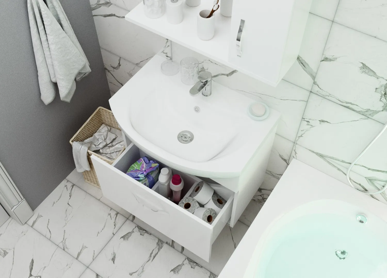Тумба под раковину Вита 65П 1в.я. белый глянец, МДФ
