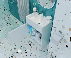- корпус тумбы покрыт акриловой эмалью: гарант влагостойкости и долговечности;