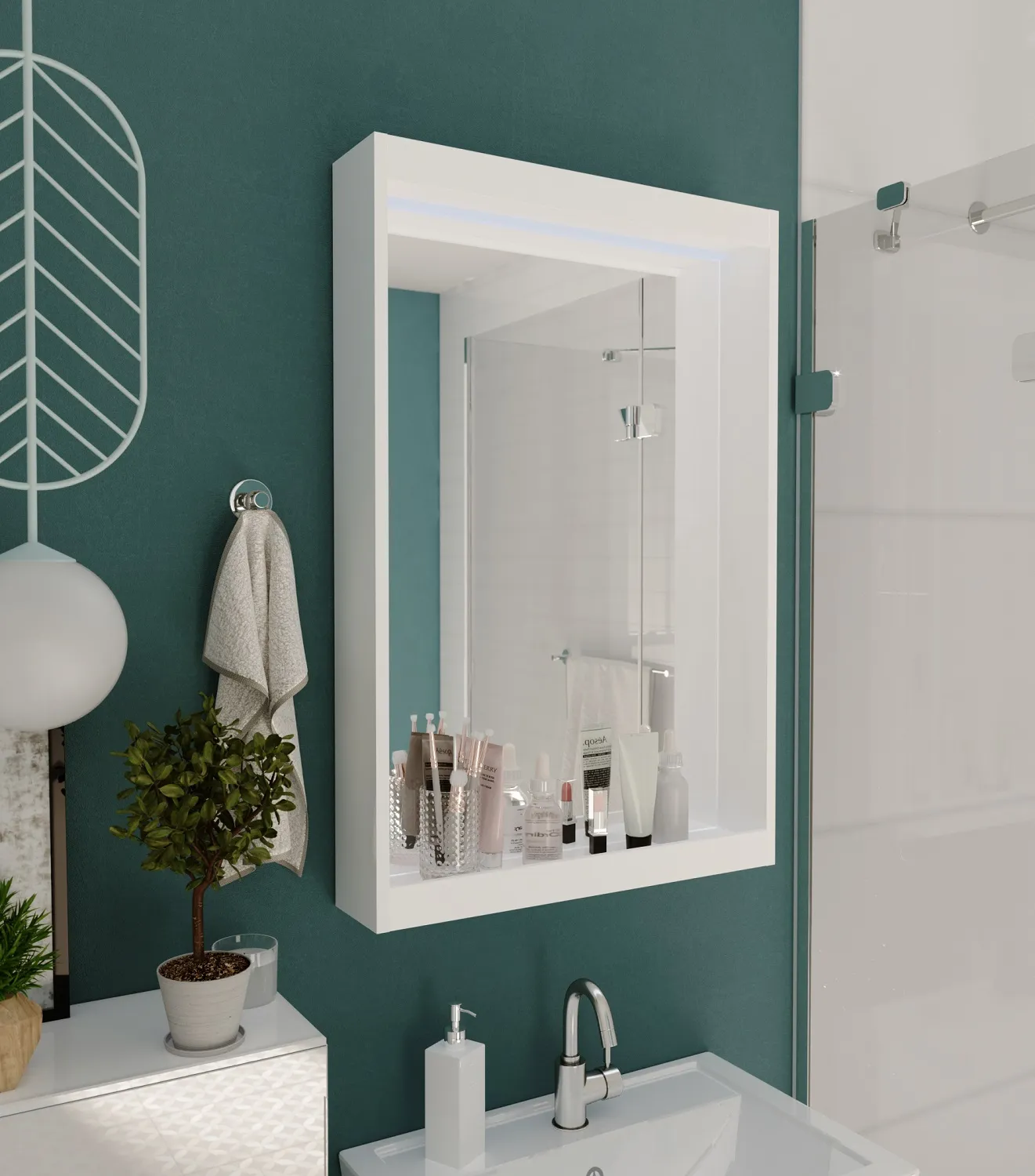 Стильное зеркало с функциональной рамой, в котором воплощены все самые актуальные идеи для декора интерьеров ванных комнат. Отсутствие лишних деталей, четкие линии и лаконичная прямоугольная форма делают его универсальным аксессуаром для любого пространства в современной или эклектичной стилистике. Также модель имеет преимущества в виде дополнительной полки, подсветки и расположенных на дне выключателя и розетки. Благодаря зеркальному полотну из серебряной амальгамы французского или бельгийского производства срок службы зеркала значительно увеличивается.Характеристики:
